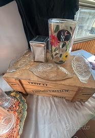 Un servizio di bicchieri spaiato, perfetto per chi ama il vintage, completo di una cassetta in legno.