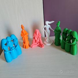11 stampe 3D dal design contemporaneo. Pezzi caratterizzati da colori vibranti (verde fluo, blu elettrico, rosa shocking, arancio) e classici (bianco e nero). Il set comprende: eleganti figure femminili, silhouette astratte di coppie e sculture minimaliste. Realizzate con tecnologia 3D