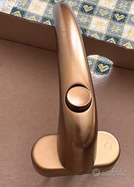 Vendo lotto da 12 maniglie anti ribalta , color bronzo/ ottone , con pulsante di sicurezza. Usate,, ma in ottime condizioni .