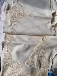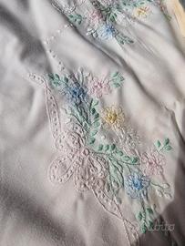 3 completi matrimoniali nuove anni 60 ricamate a mano con inserti in tombolo. una presenta piccola macchia. tutte insieme €250,00. singolarmente €120,00
