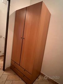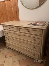Vendo in blocco (o singolarmente) quattro mobili contenitori in ottime condizioni, ideali per camere da letto o corridoi. Armadio Moderno: 2 ante e 2 ampi cassetti alla base, finitura legno chiaro naturale. Linea pulita, ideale per camerette o ripostigli. Armadio Vintage Anni '60: Grande modello a 4 ante in legno color miele, con maniglie originali e tipici piedini a spillo. Comò Laccato Panna: Cassettiera a 5 cassetti (2 piccoli superiori e 3 grandi) in stile classico con pomelli decorati. Comò Classico: Cassettone a 4 cassetti in legno scuro con maniglie in metallo dorato e cornice superiore sagomata. Ritiro a carico dell'acquirente. Per altre informazioni scrivere in privato.
