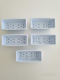 Lotto 5 fioriere vasi Bama colore bianco ghiaccio. Con sottovaso a riserva d'acqua. Nuovi, mai usati, acquistati per errore. Dimensioni 20 x 9,5 x 9 cm.