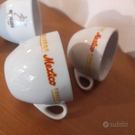 N. 5 tazze da cappuccino bar con logo, da collezionismo. In blocco richiesta 16 euro. Per pezzi singoli parliamone. Si tratta delle seguenti tazze con brand, grandi da cappuccino: -due tazze caffè Mexico -due tazze caffè Mokarabia -una tazza caffè Essse. Sono in ottime condizioni, si possono ritirare a Bologna zona Stadio oppure posso spedire con pacco a prova di corriere.