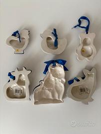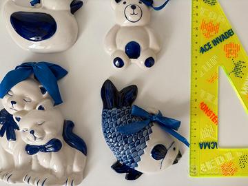 lotto 6 decorazioni ceramica bianco blu animali