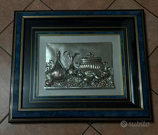 Quadro natura morta in argento ( cornice blu) 59x68.