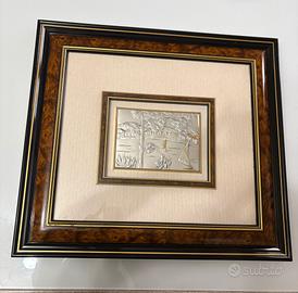 Quadro argento paesaggio e vela (cornice radica) 54x50.