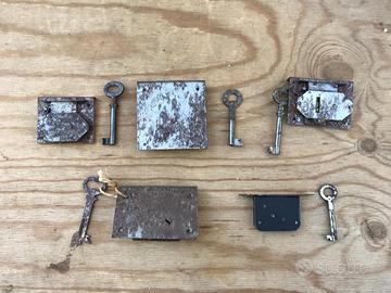 2) - Antica serratura per mobili antichi, cassapanche, bauli, comò, comodini, ecc ecc; misura cm. 5,6 x 4,8 x 1,7