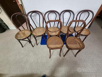 Lotto di 7 sedie 5 grosse dietro 2 più piccole davanti da impagliare.