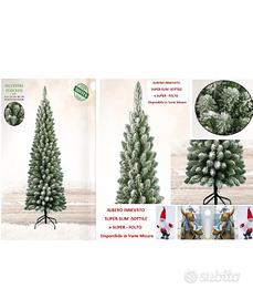 PER CESSAZIONE ATTIVITÀ VENDO ENORME LOTTO DI CIRCA 60/80 ALBERI DI NATALE SLIM IMBALLATI NUOVI IN ALTEZZE DIVERSE DA CM.120 A CM.240 VERDI O CON NEVE ARTIFICIALE PIÙ OLTRE 300 GHIRLANDE E FESTONI NATALIZI VERDI LUNGHEZZA CM.270 PIÙ GRANDE QUANTITÀ DI CORDONI LUCI LED NATALIZIE DA 90 A 320 LED DI QUALITÀ PIÙ INNUMEREVOLI OGGETTI DA REGALO E DECORO NATALIZI ( CARILLON, TAZZE, DECORI, ETC. ) TUTTI NUOVI IN IMBALLO ORIGINALE PIÙ MOLTISSIMI OGGETTI SFUSI MA NUOVI . TUTTO REGOLARMENTE FATTURATO E DA FATTURARE O SCONTRINARE. VALORE D'ACQUISTO PIÙ O MENO 10/12.000 EURO O FORSE PIÙ ( DIFFICILE FARE UN CONTO ESATTO ) . VENDO SOLO A RESIDENTI NELLE PROVINCIE DI LECCE BRINDISI E TARANTO PER OVVI MOTIVI PERCHÉ SERVIRÀ UN CAMION ABBASTANZA GRANDE PER RITIRARLI. NON SPEDISCO NÉ VENDO PARZIALMENTE IL LOTTO. PER DELUCIDAZIONI, INFORMAZIONI OD ALTRO CONTATTATEMI AL MIO UFFICIO 0836-331227 O AL MIO CELLULARE/ WATHSAPP 338-4283444. NO FURFANTI O PERDITEMPO ME NE ACCORGEREI SUBITO DOPO UNA ESPERIENZA DI QUASI 50 ANNI DI ATTIVITÀ. CHIEDERE DI GIULIO