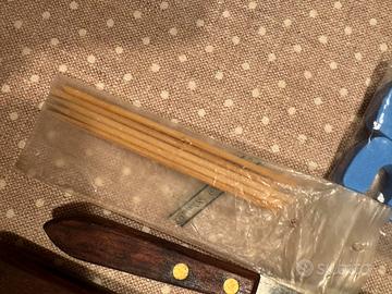 cinque bastoncini d’arancio per cuticola, uno scalzino per cuticola usato