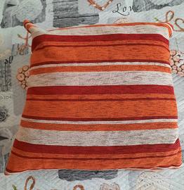 Lotto di cinque cuscini etnici in cotone a righe beige, rosse e arancioni, perfetti, misure 50 x 50 x 18 cm, vendo a euro 30. Consegna a mano a Torino presso il mio domicilio in corso Sebastopoli angolo via guido reni, non spedisco