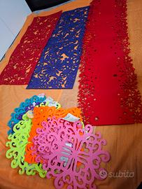 ✨ lotto decorazioni casa in feltro colorate – svendo ✨ vendo lotto completo di decorazioni in feltro traforato, in vari colori vivaci e forme decorative. 🎨 colori: rosso, viola, verde, blu, rosa, bianco, arancione 📏 formati: misti (sottopiatti grandi, centrotavola e decorazioni più piccole) 🧵 materiale: feltro resistente 🆕 condizione: nuovi, alcuni ancora con etichetta 📦 totale: 25 pezzi perfetti per: – decorare la tavola – eventi / feste – casa (stile allegro e colorato) – allestimenti o foto ❗vendo tutto in blocco 💸 prezzo basso per liberare spazio (svuoto casa) 📩 disponibile per info 🚚 spedizione veloce