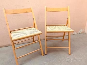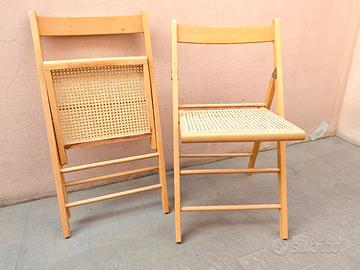 Lotto di 2 sedie in faggio pieghevoli, seduta in paglia di Vienna