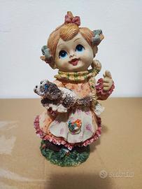 4) Elegante salvadanaio decorativo raffigurante una bambina con in braccio un cane, realizzato in materiale decorativo (resina o ceramica ).
