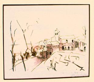 1) Gianni Bevilaqua - Litografia a colori - p.d.a. - Borgo - H. 27 cm. L. 17 cm. - Firmato a destra - Cornice in
