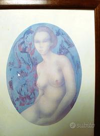 3) Alain Bonnefoit - Stampa a colori - Nudo femminile - H. 32 cm. L. 26 cm. - Cornice in legno di noce con
