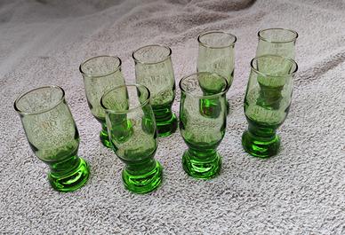 Servizio da 8 bicchierini da liquore/amaro in vetro soffiato di colore verde smeraldo