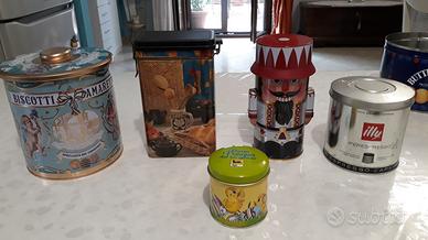 Vendo un lotto di nove contenitori di latta, in buone condizioni, il tutto al prezzo di 15 euro