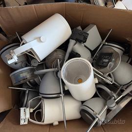 STOCK 5 SCATOLE Faretti Professionali Binario - Tridonic/Eutrac Il prezzo che vedete è per UNA scatola. Vasto lotto di illuminazione tecnica professionale, ideale per chi deve allestire grandi spazi, negozi, showroom o per rivenditori di componenti elettrici. Il materiale è distribuito in 5 grandi scatole (come da foto) e comprende una grande varietà di faretti da binario orientabili e componenti di alta qualità. Dettagli del lotto: Marche tecniche: Componentistica Tridonic, attacchi Eutrac, Global e altri standard professionali. Tipologia: Faretti a scarica (ioduri metallici) e faretti spot orientabili. Quantità: Grande volume, circa 5 scatole piene di corpi illuminanti e adattatori. IMPORTANTE: Il materiale proviene da uno sgombero garage/magazzino. NON è stato testato e non è possibile garantire quanti pezzi siano funzionanti e quanti no. Per questo motivo, l'intero stock viene venduto esclusivamente in blocco a un prezzo di realizzo, con formula "visto e piaciuto" per ricambi, riparazione o recupero componenti.