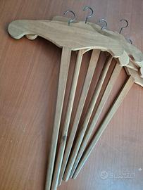 Lotto grucce in legno vintage, appendiabiti con manico