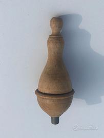 L'interruttore ciondolo o peretta a pulsante singolo per luce a sospensione ha una lunghezza totale di 89 mm e diametro 34 mm. L’interruttore a parete ha un diametro alla base di 59 mm, altezza 34 mm. Buona conservazione generale, segni d'uso e d'epoca, legno eventualmente da pulire o lucidare , come da immagini allegate.