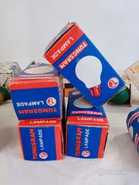 Lotto stock lampadine vintage a incandescenza come in foto, non sono un'esperto sembrano tutte nuove all'interno ma non ne garantisco il funzionamento né se il contenuto corrisponde. King tungsram leuci Tesla quello che c'è scritto sulle scatole, possibile spedizione. Per info contattatemi