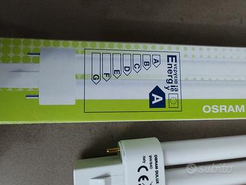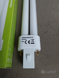lampadina fluorescente compatta Osram Dulux S. Modello: Dulux S 9W/840. Potenza: 9 Watt Pari a 60W Incadescenza Temperatura Colore: 4000 Kelvin (Bianco Freddo). Disponibili 7 pezzi Attacco: G23 (2 pin) con starter integrato. Durata Media: 10.000 ore. Euro 3,50 cadauna Euro 20 lotto 7 pezzi