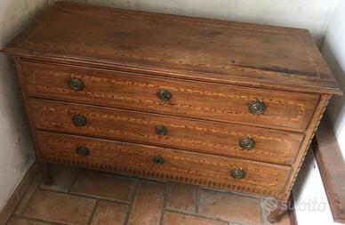 Lotto di mobili antichi vari, vendo singolarmente, o in blocco. Questi i dettagli: Foto 1: Cassapanca risalente al 1500, rinascimentale, in noce, intagliata, provenienza Centro Italia. Misure: altezza: 55cm larghezza 155 profondità 48 Prezzo 1500 euro. Foto 2: Comò risalente al 1700, stile Luigi XVI, in noce, intarsiato, piemontese. Misure: A: 65 L: 130 P: 52 Prezzo 1200 euro. Foto 3: Credenza risalente ai primi 1800, in ciliegio, francese, con piano interno estraibile (tra il piano e i due cassetti). Misure: A: 105 L: 135 P: 52 Prezzo 500 euro. Foto 4: Credenza risalente ai primi 1800, in noce, napoletana. Misure: A: 102 L: 132 P: 64 Prezzo 500 euro. Foto 5: Armadio a due ante risalente al 1800, in pino, piemontese, due cassetti interni. Misure: A: 230 L: 150 P: 60 Prezzo 400 euro. Foto 6: Comoda risalente al 1700, stile Luigi XVI, in noce, provenienza centro Italia. Misure: A: 80 L: 60 P: 40 Prezzo 300 euro. Solo ritiro! Per altre foto ed ulteriori dettagli sono a disposizione. I prezzi non sono trattabili.