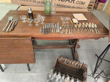 - massiccio tavolo in noce nazionale tutto massello , piano spessore 5 cm con prolunga. struttura perfetta e solida, nessun tarlo. il piano va levigato.
