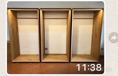 Vendo lotto di mobili in legno di rovere composto da: - bancone per negozio - tavolo con superficie in cristallo - set scaffalature Un anno di vita, come nuovi. Ritiro a Pieve di Cadore (BL).