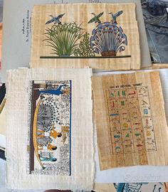 Vendo collezione di papiro egiziano autentico, soggetti classici: Nefertiti, Faraoni, geroglifici, scene mitologiche, barche e piramidi.