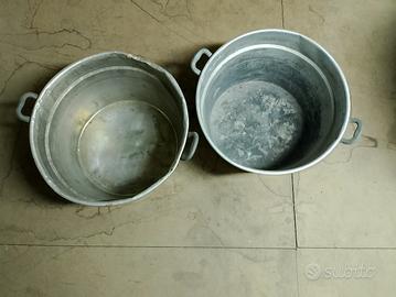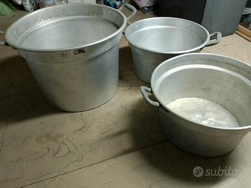 pentole pentola quella grande è da 60 LT le altre due più piccole saranno sui 40 LT, con due coperchi,per chi acquista tutto il lotto in omaggio i due pentolone più usati , ultima foto, casseruola casseruole grandi grande vintage anni 80 90