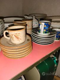 Vendo in blocco assortimento di piatti, tazzine e tazze vintage, perfetti per chi ama lo stile retrò o per arredare casa, bar o B&B con un tocco originale. Il lotto comprende piatti fondi, piani, dessert e diversi servizi di tazzine da caffè ed espresso, in ceramica e porcellana, d’epoca ma in buone condizioni, con qualche segno del tempo che ne racconta la storia. Un’occasione unica per veri amanti del vintage o collezionisti!