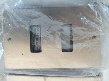 Vendo Lotto placche Ave Grattacielo alcune usate alcune Nuove. Composizione lotto Nuovo: 6 placche da 3 12 placche da 2 1 Interruttore Bipolare 2 castelletti usato: 1 placca da 4 2 placche da 3 4 placche da 2 1 placca da 2 BTicino 1 presa TV 2 interruttori 1 spia rossa castelletto castelletto tondo da 2