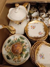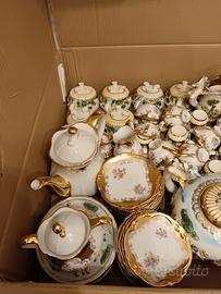 Vendo importante lotto di porcellana Bavaria vintage, composto da vari pezzi: teiere zuccheriere lattiere tazze con piattini piatti dessert pezzi decorativi lavorati (anche con figure in rilievo) 🎨 Decorazioni floreali e finiture in oro 🏺 Marchio visibile: Bavaria (Germania) 📦 Vendita in blocco, come da foto 📍 Ritiro a mano (materiale delicato)