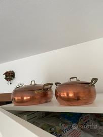 •2 pentole in rame con manici in ottone e coperchio, molto pesanti