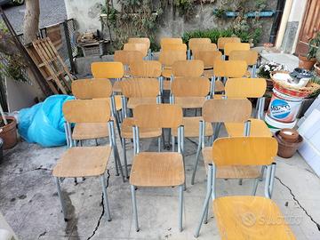 Vendo stock di sedie scolastiche originali(25),. Struttura robusta in tubolare metallico grigio e seduta/schienale in legno multistrato curvato.