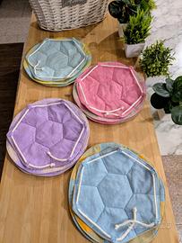 Lotto di 4 cestini dal design unico e grazioso. È possibile utilizzarli in 4 varianti più la posizione piatta salvaspazio. Lavabili.