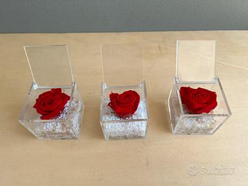 Lotto tre rose rosse stabilizzate in teca chiuse singolarmente ciascusa nella propria!! Sono tutte nuove come da negozio!! Ottime anche come idea regalo!! Il prezzo si riferisce all’intero lotto preso insieme!!