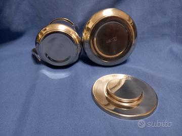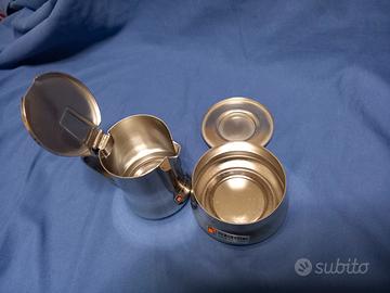 Articolo B: una Zuccheriera con coperchio ( 6 Tazze) e una Caffettiera con manico e coperchio (3 tazze) entrambe in acciaio inox 18/10 della DE AGOSTINI. Entrambe nuove e mai usate, ancora nella loro confezione originale.