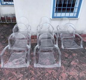 Vendo set di 8 sedie LOUIS Ghost starck originali Kartell, un classico intramontabile del design italiano. Le sedute sono di seconda mano ma conservate in ottimo stato di cura, senza difetti strutturali e con minimi ed inevitabili segni del tempo che non ne compromettono l'estetica.