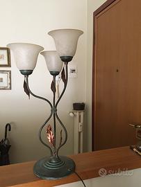 Lampada a tre faretti decorativa e da arredo in ferro battuto color verde rame