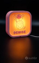 Lampada decorativa stampata in 3D, pensata per creare un’atmosfera calda e accogliente in cameretta o per diventare un regalo davvero unico. Il design luminoso può essere personalizzato sia nel personaggio sia nel nome in rilievo, così da renderla speciale per chi la riceve.