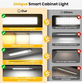 Lureshine, 76 LED Luce a LED con sensore di movimento USB ricaricabile Luce LED adesiva, luminosità dimmerabile con 3 colori Luci a led Cucina sotto mobile per scala, corridoio, garage-2 confezioni