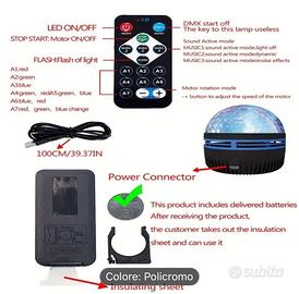 LUCE NOTTE SFERICA ROTANTE LED RGB CON CIELO STELLATO INCANTEVOLE.