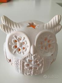 Vendo lucetta notturna in ceramica a forma di gufetto portafortuna, con luce gialla calda. Ideale per camerette bambini. Nuova. No perditempo!