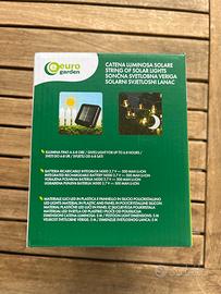 20 luci led, 5 metri di lunghezza con pannellino solare. Nuovo