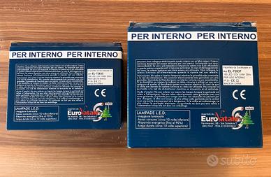 Vendo due confezioni di luci di Natale a led, una con filo da 100 led (lungo 5,5 m) è una con filo da 180 led (lungo 9 m). Usate ma perfettamente funzionanti. Hanno un motore elettronico che permette di gestire diversi giochi di luce. Le luci sono tutte di colore bianco.