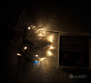 Vendo 4 Catene di luci con 30 led(6 flash)ciascuna, da interno (funzionamento a batteria 3AA) colore bianco caldo.