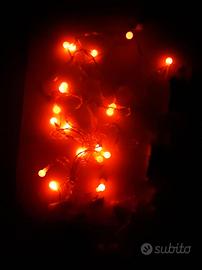 Lotto di luci led decorative lampeggianti, 4 fili da 10 lucette rosse e 1 filo lungo da 39 led bianchi. Vendita anche singolarmente. Per decorazioni di natale, abbellimento per casa, oggetti, contenitori o vasi in vetro, feste, per modellini, accessori costumi. Le rosse funzionano con 2 pile da 1,5 v, il cavo bianco con 3 pile. Porta batterie da 1,5 V. con tasto accensione spegnimento on off. Pile escluse.
